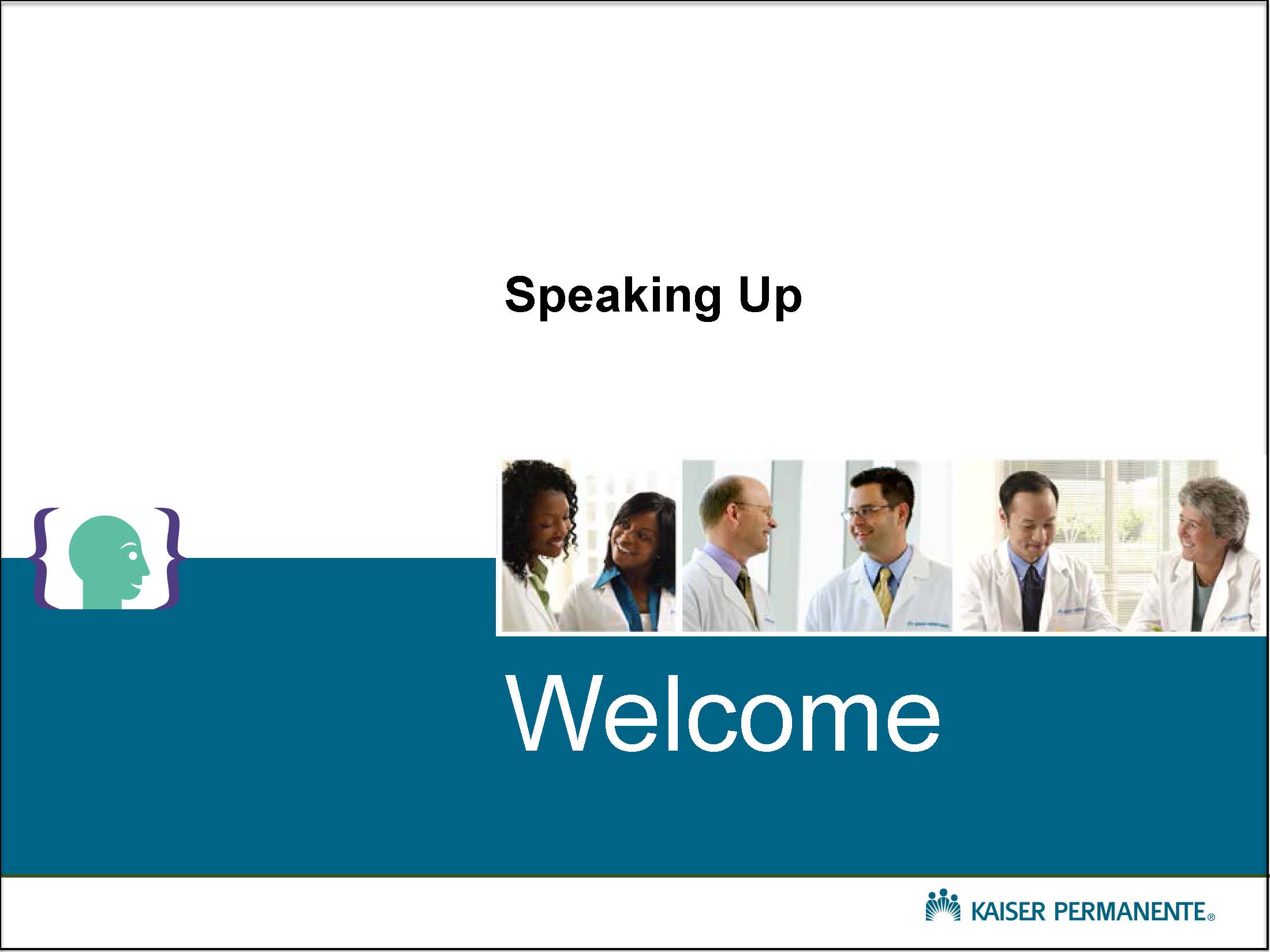 The Speaking Up Trainer’s Toolkit includes messages, step-by-step instructions, examples, scenarios and PowerPoint slides that teach staff and physicians effective techniques for speaking up for patient and worker safety. Lessons are designed to be used during team meetings, huddles or one-on-one conversations. The training is accessible from any Internet-enabled device, including smartphones, inside or outside the KP network.