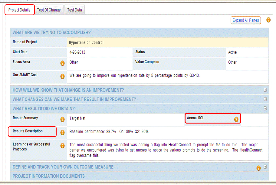 In addition, teams can now record their financial results directly into UBT Tracker thanks to a new data field, Annual ROI, that allows teams to share how much money a project saved or generated. The field can be found under the Project Details tab (see graphic below).