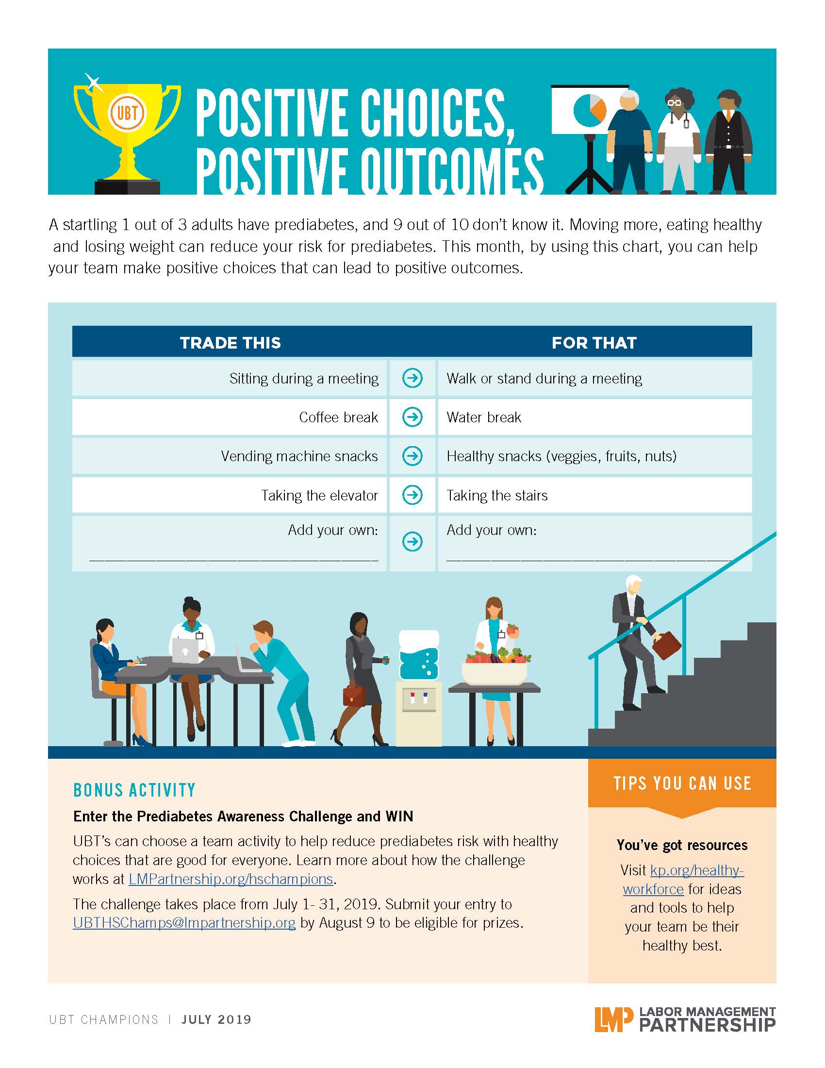 TOOLS Health and Safety Champions — July 2019 Focus Share Tweet Email Format:PDFSize:One page, 8.5" x 11"Intended audience:UBT health and safety championsBest used:Help your team make positive choices that can prevent diabetes. Related tools: Health and Safety Champions — May 2019 Focus Health and Safety Champions—April 2018 Focus Health and Safety Champions — January 2021 Focus Health and Safety Champions—October 2018 Focus Health and Safety Champions — January 2020 Focus Download PDF 82 people found this helpful. Was it helpful to you? YesNo