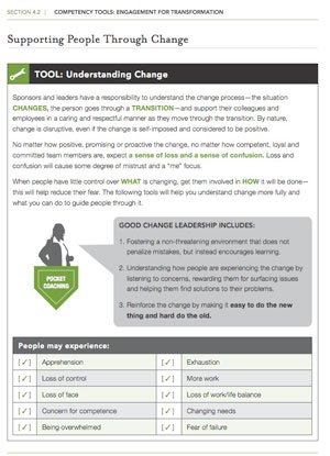 TOOLS Understanding Change Share Tweet Email Format:PDFSize:One page, 8.5" x 11"Intended audience:Nurses and other Kaiser Permanente caregiversBest used:To educate team members about the process of change and how to help patients through that transition.Related tools: Supporting People Through Change Sponsor and Leader Behaviors: Traditional vs. Transformative Poster: Help Teams Grow UBT Success Factors Creating a Performance Excellence Culture Download PDF 119 people found this helpful. Was it helpful to you? YesNo