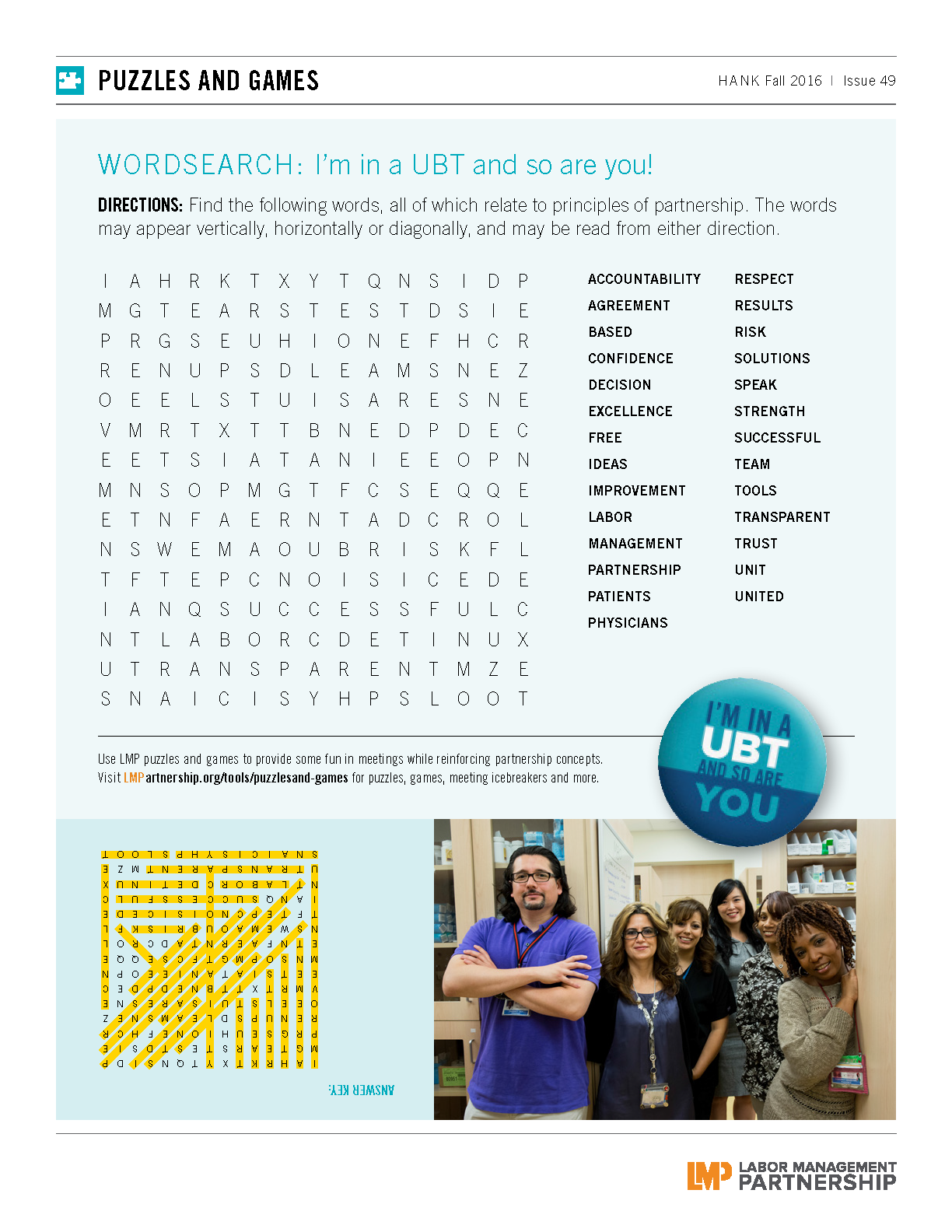 When you need to provide a few light moments in a meeting, use this word search about being part of a unit-based team.
